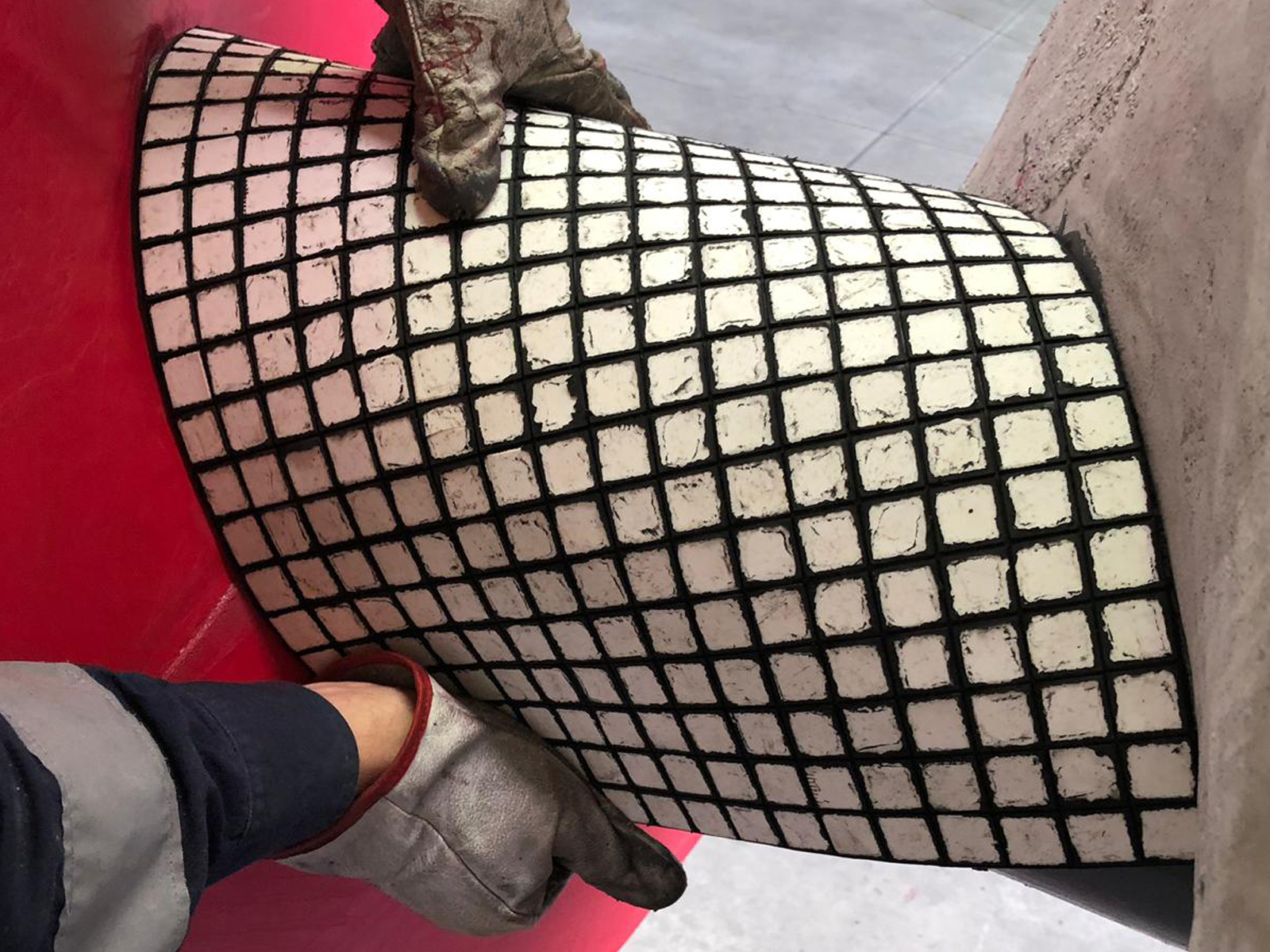 We can apply Direct Bond Ceramics to steel substrate including Rubber backed Ceramic matting.